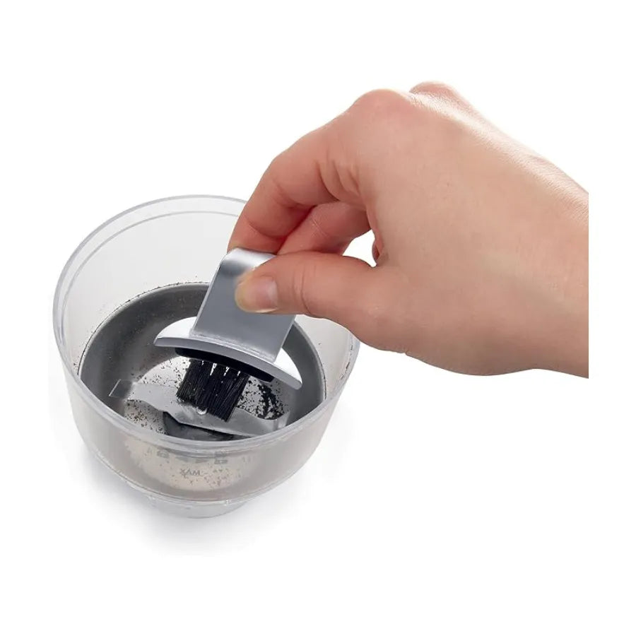 With a bean container capacity of 90 g, the grinder can prepare enough ground coffee for up to 12 cups at once. The transparent removable container makes it easy to monitor the grinding process, while the included cleaning brush helps maintain the grinder after use.